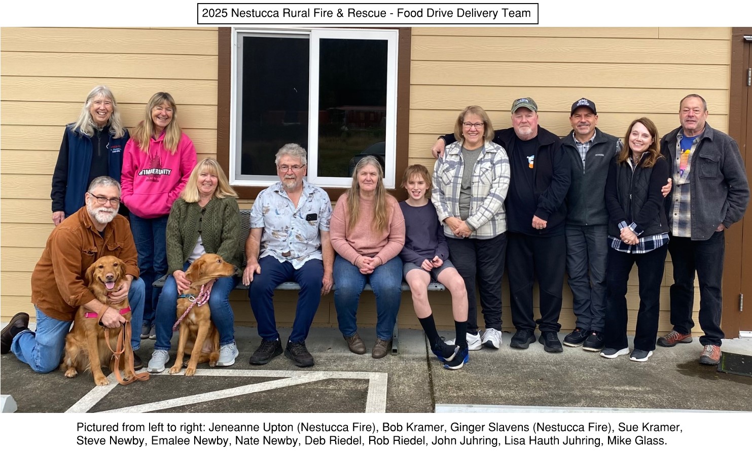 Pictured below are members of the 2025 WMC Thanksgiving Food Drive Delivery Team. The team brings Thanksgiving Dinners to Nestucca Rural Fire Department who receive the donations of food and gifts and distribute to those in need.